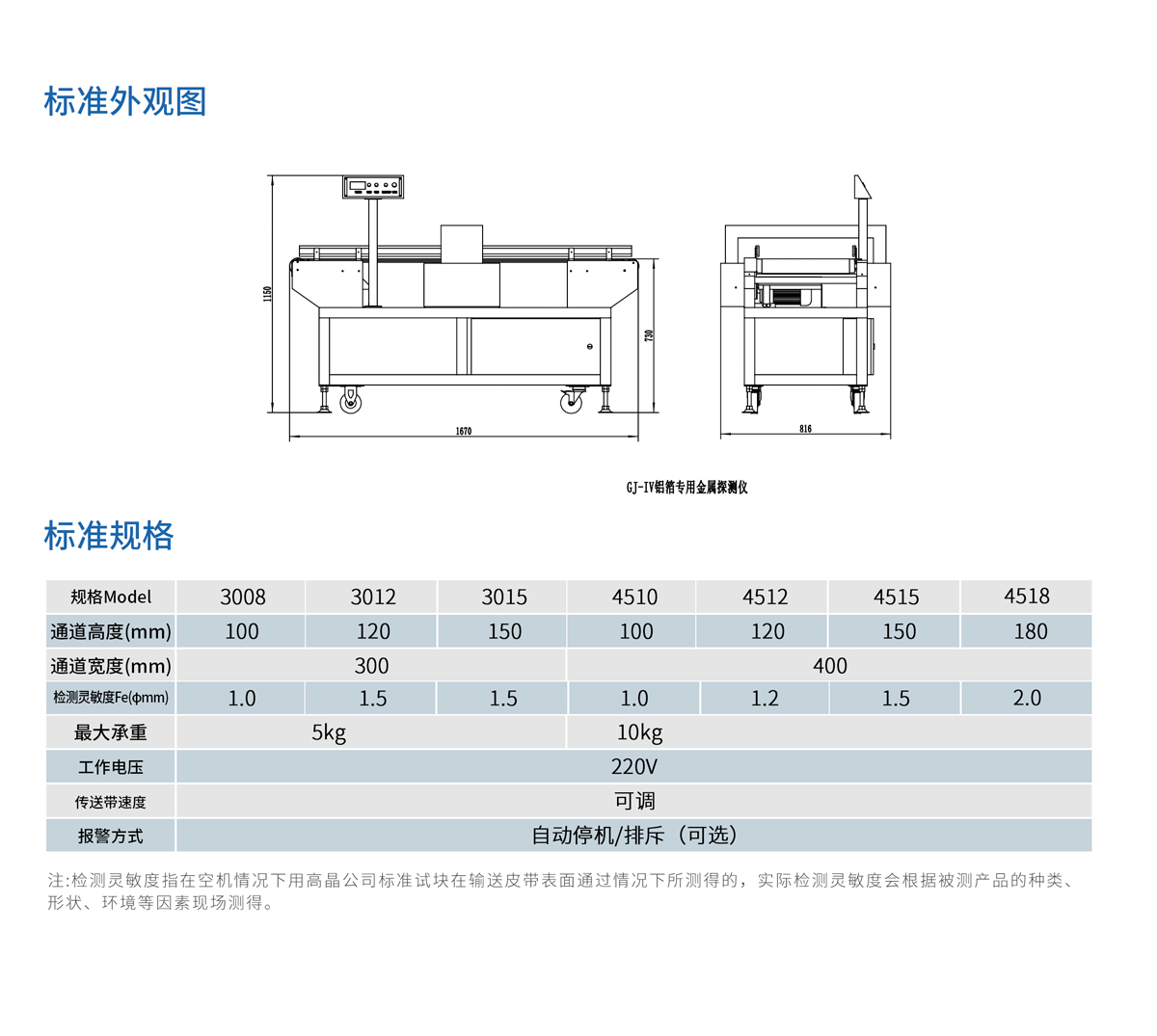 適用于鋁箔包裝、鋁膜包裝、帶鋁扣肉腸、腌制品等金屬異物檢測(cè)。